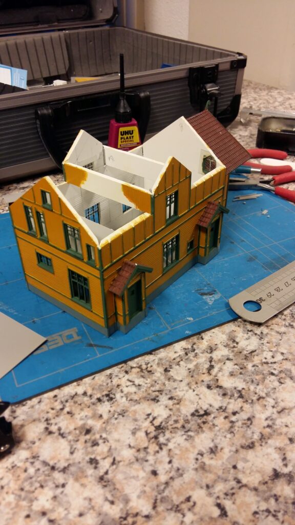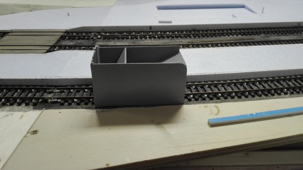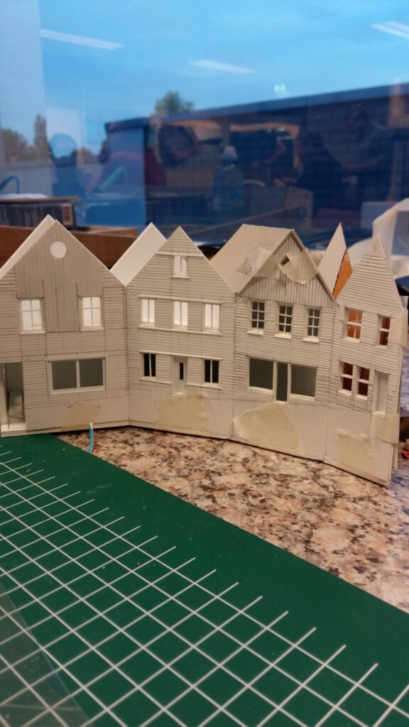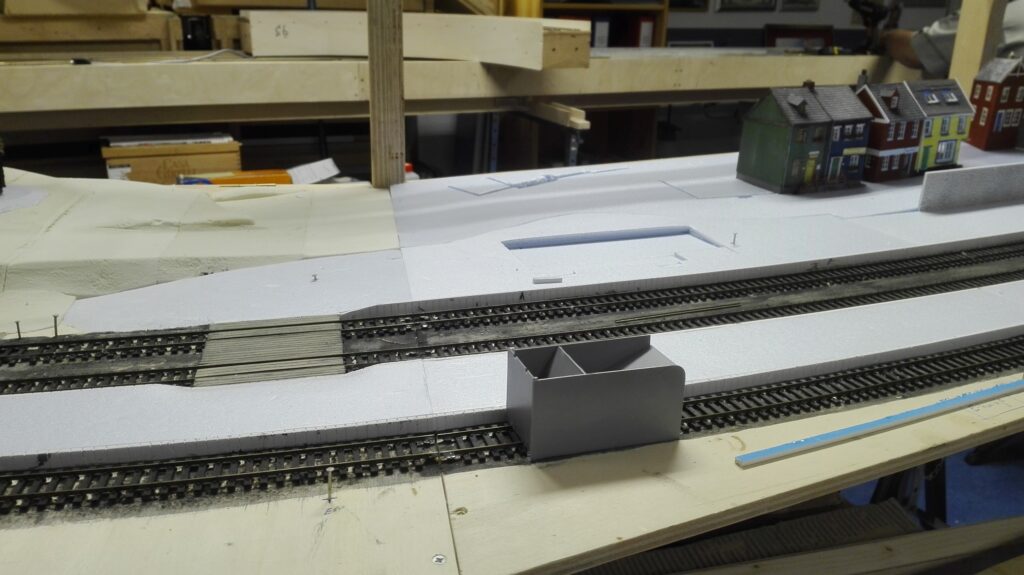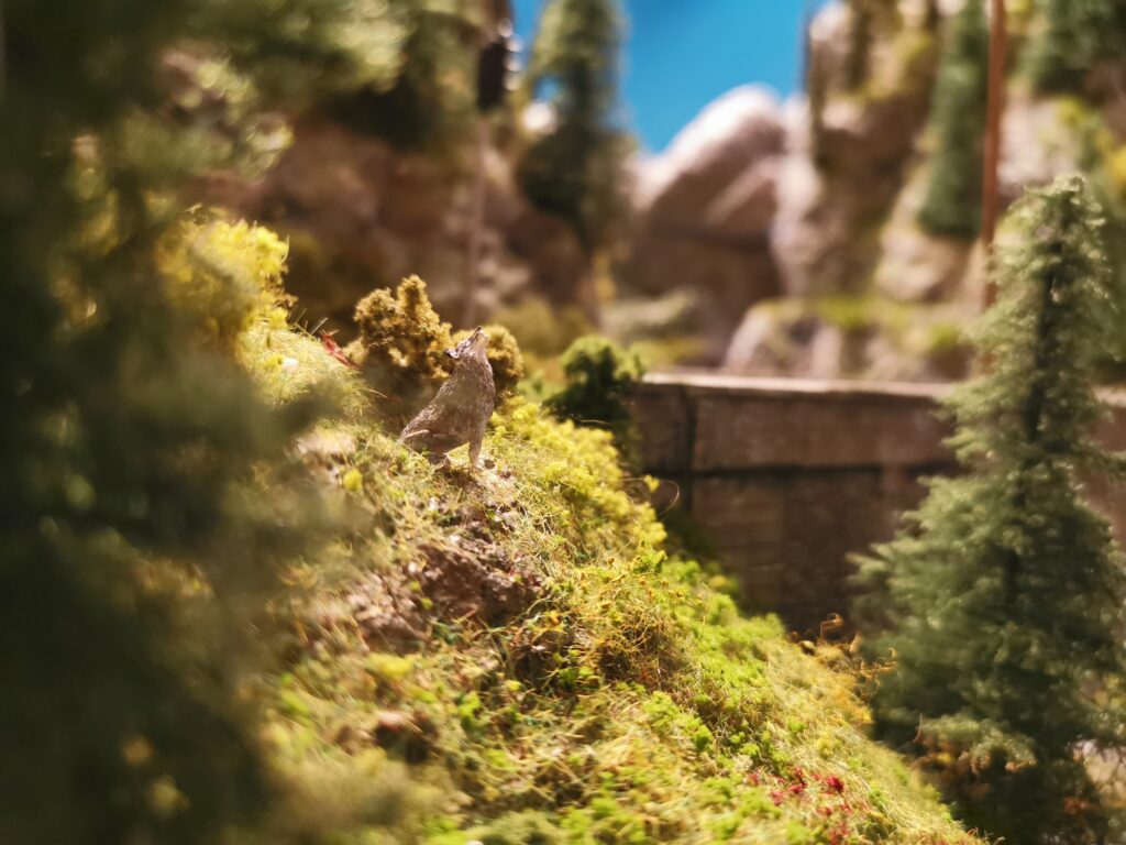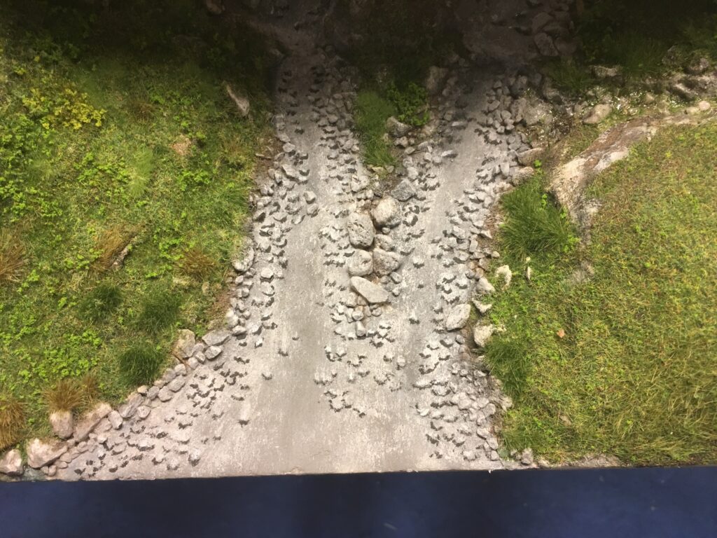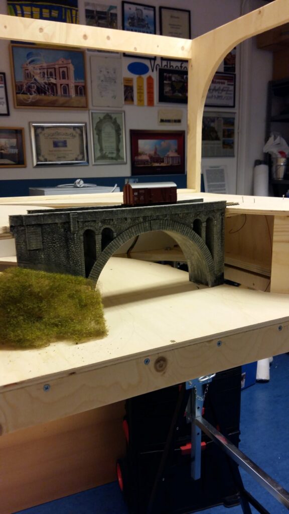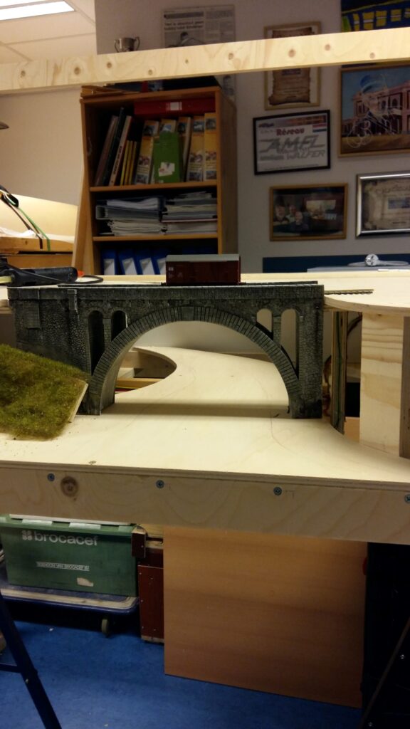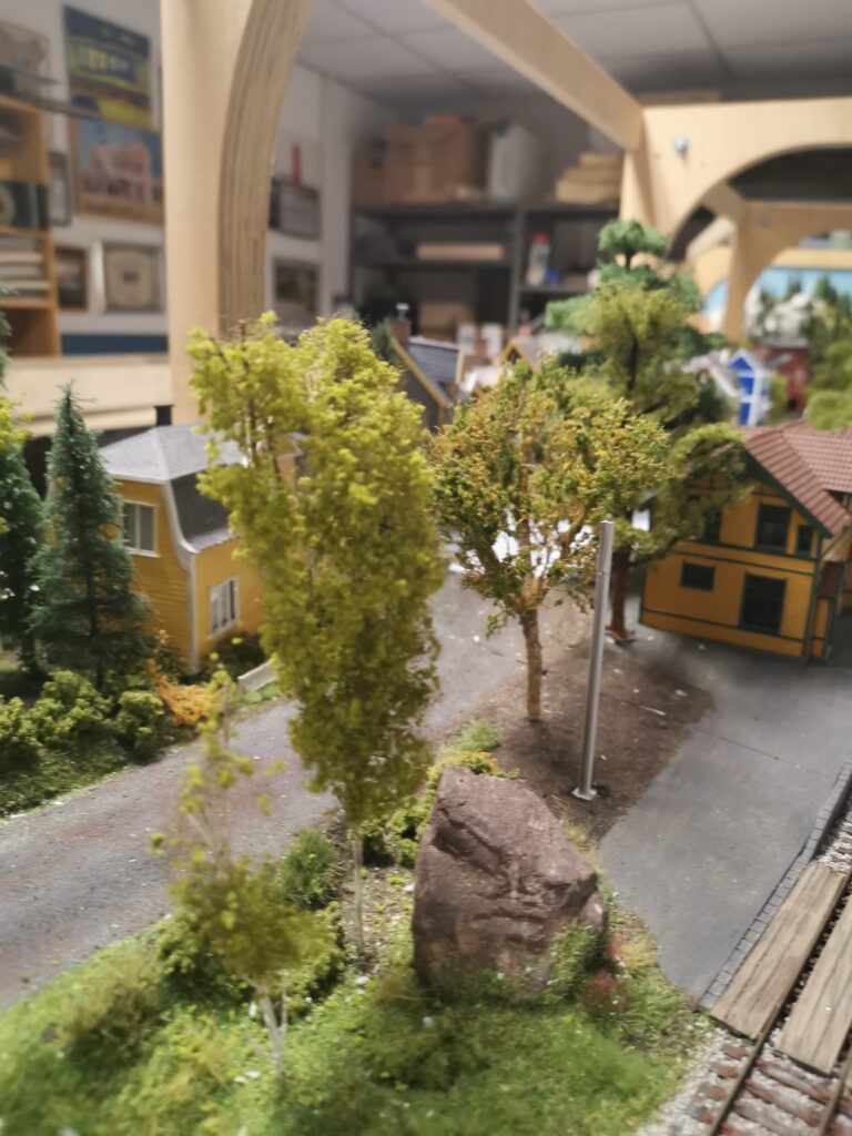 Voorjaar 2019. De rotsen krijgen al vorm en hier en daar ook al wat verf. Het station en al enkele huizen zijn klaar, voorlopig staan ze nog niet vast. Ook de rotspartij aan de voorkant krijgt al vorm en wat verf.