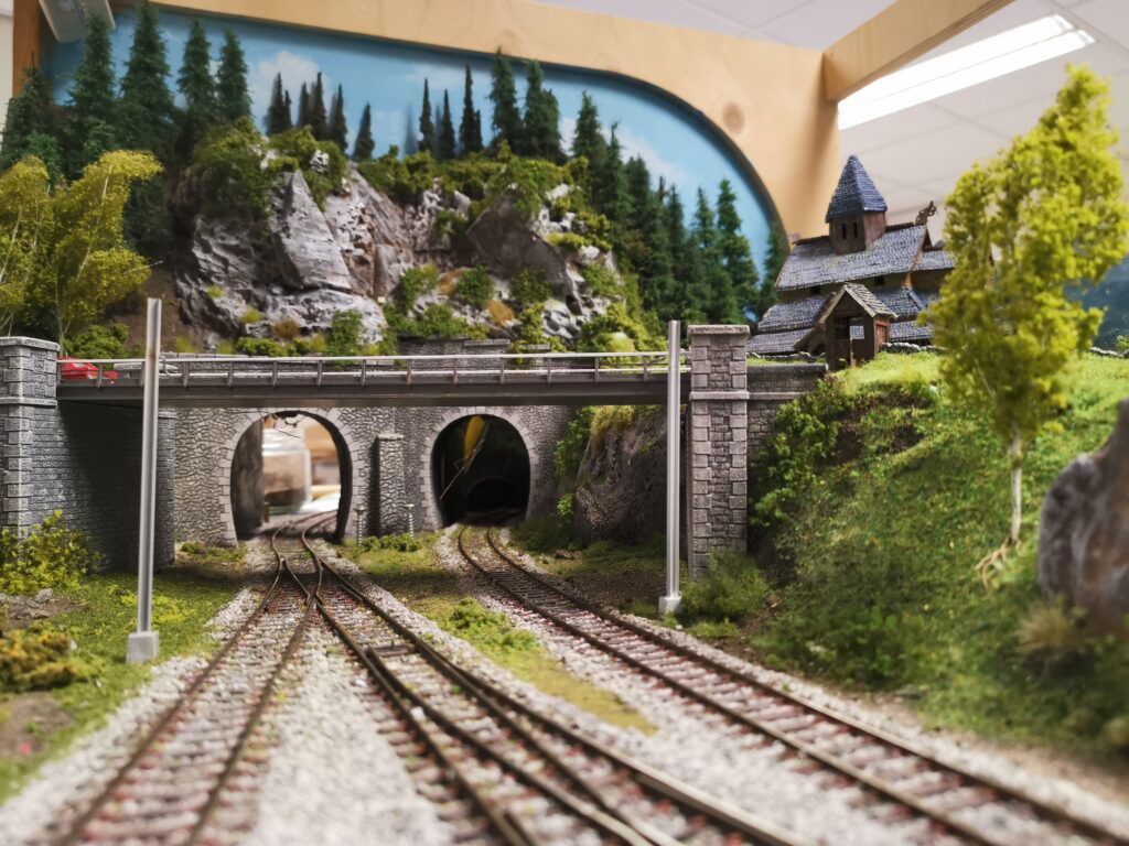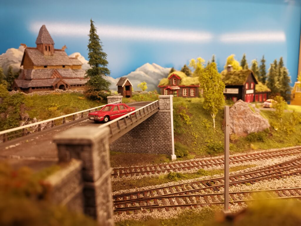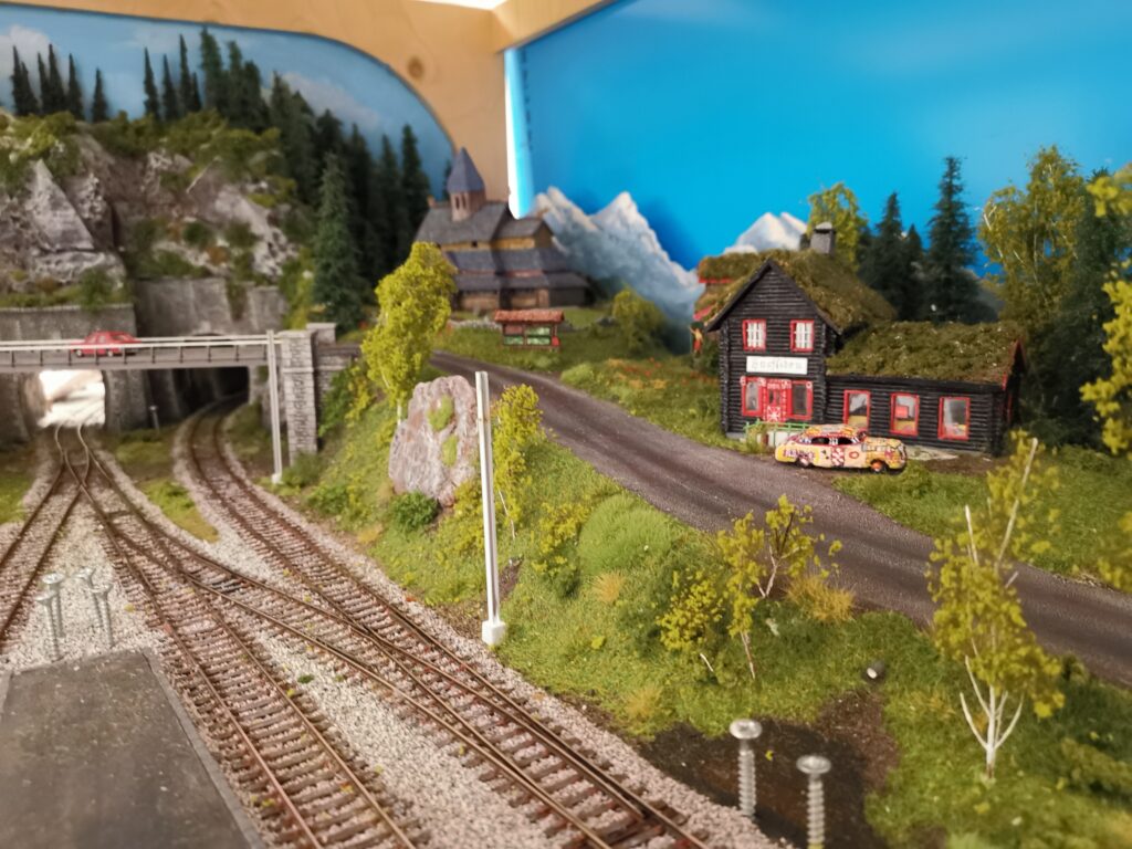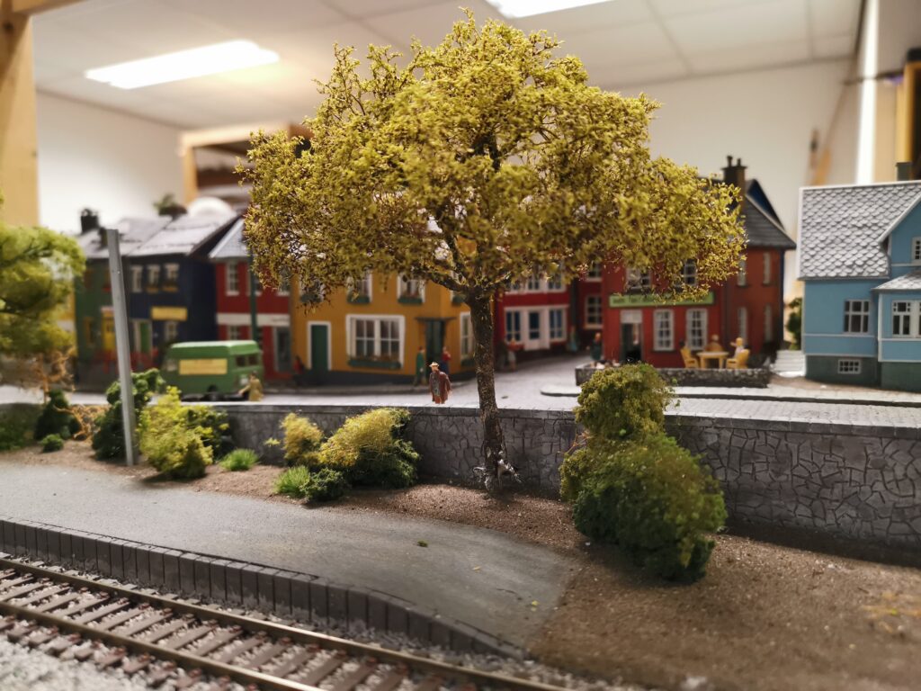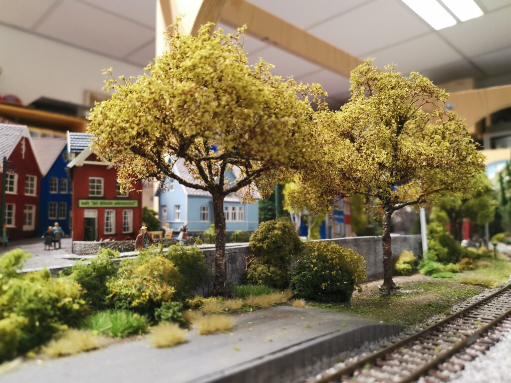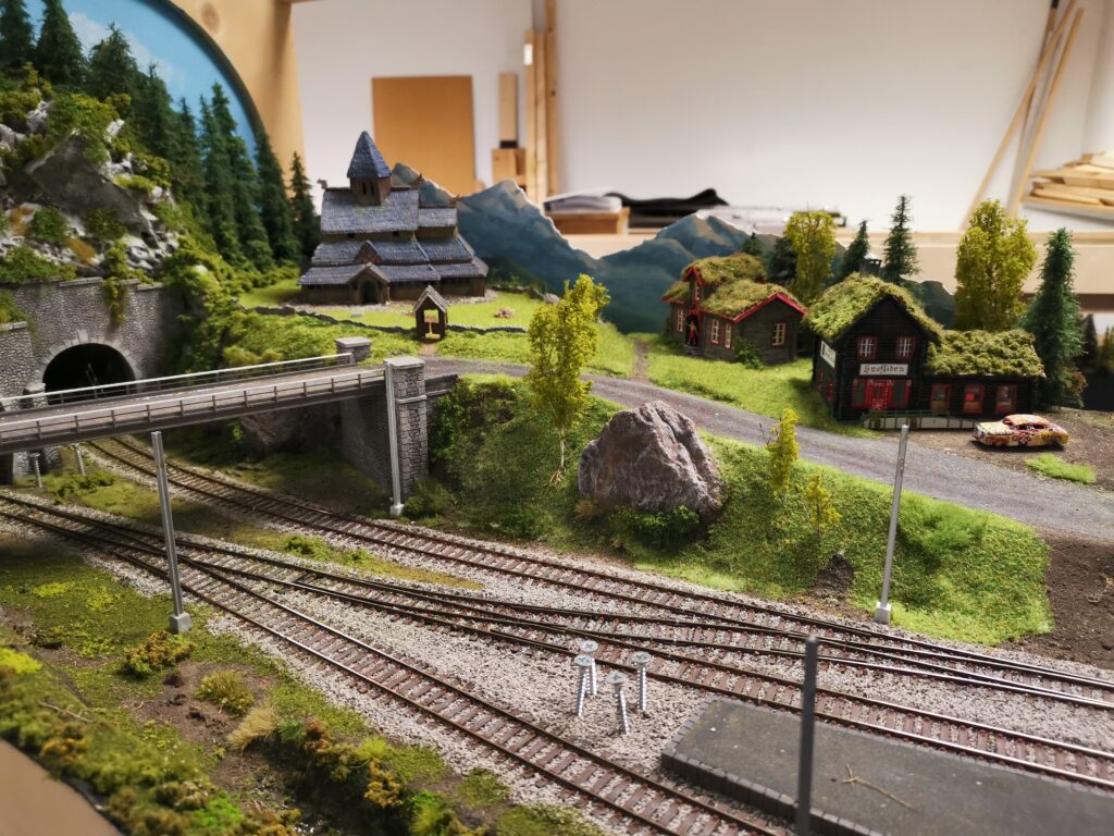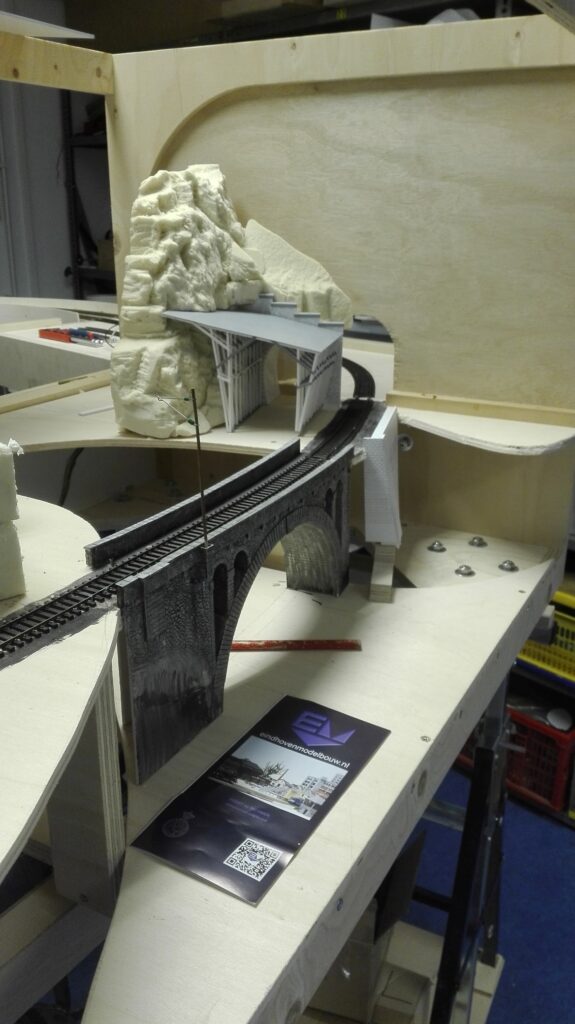 Najaar 2019. Aan de linkerzijde is ook al hard gewerkt, de houten staafkerk is geplaats en is er druk gewerkt aan de twee tunnel portalen. De brug over het spoor is een 3d print en de brughoofden zijn van forex gemaakt.