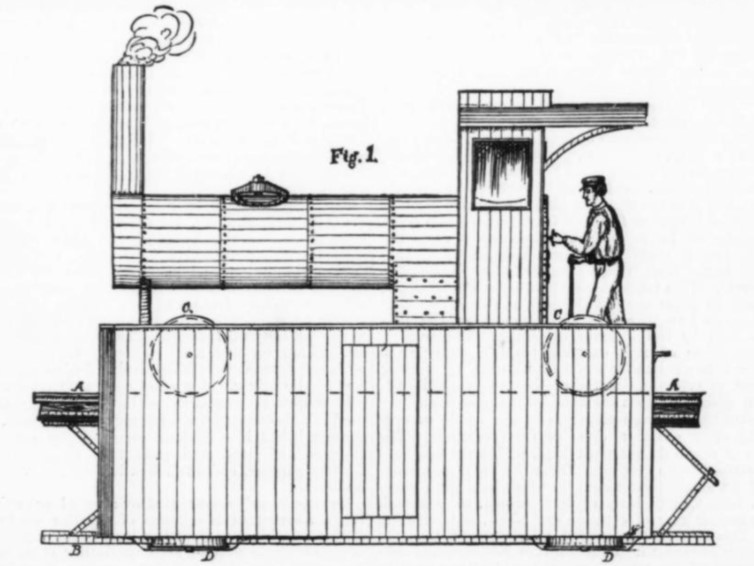 In de Scientific American supplement (uitgave 12 augustus 1876) staan een aantal tekeningen van de locomotief en de treinwagon. Uitgaande van deze tekeningen, samen met de overige informatie uit het artikel, heb ik de baan en het rollend materieel gebouwd.